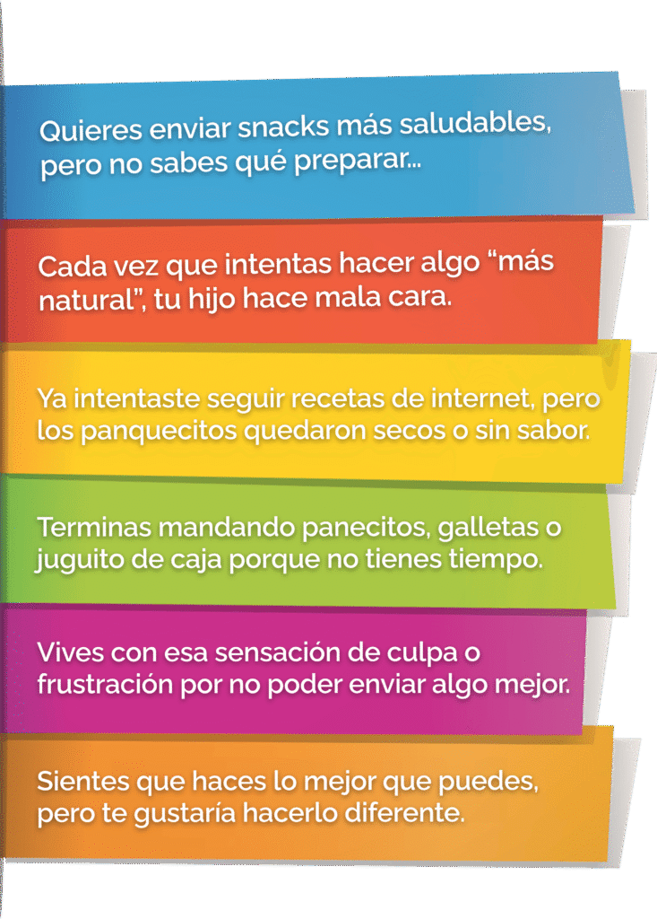Otras mamás empezaron a preguntar, y así nació Guía Práctica de Loncheras Saludables: un espacio para enseñar a preparar snacks saludables, prácticos y deliciosos.