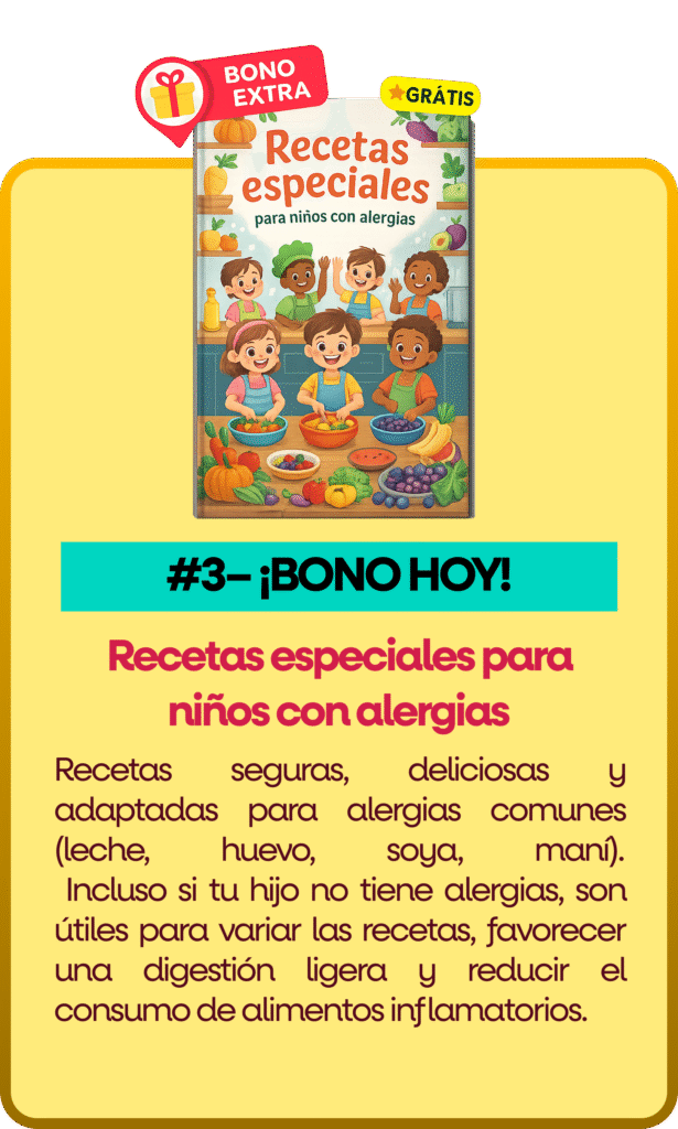Muchas recetas son naturalmente sin gluten, sin lácteos y sin azúcar refinada. Aun así, cada preparación indica claramente los ingredientes para que tú revises lo que se adapta mejor a las necesidades de tu familia.